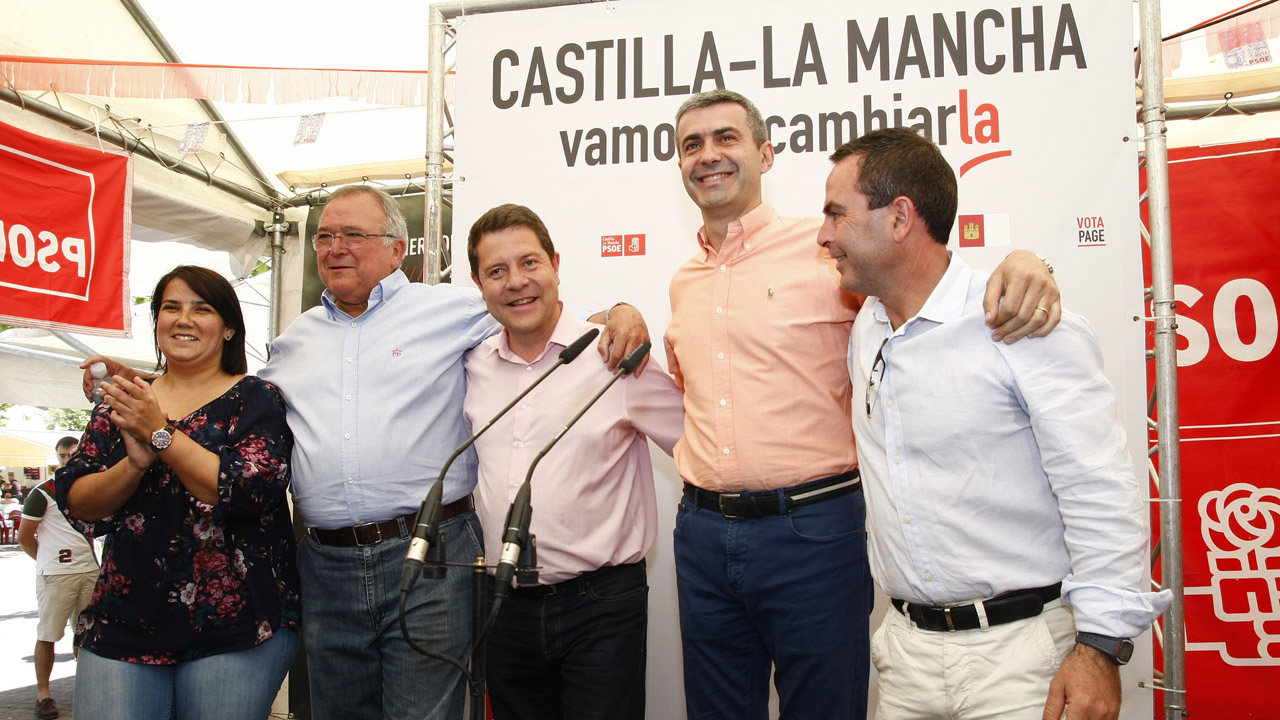 García-Page, que ha tenido un gesto de apoyo con el secretario local del PSOE, José Gutiérrez, arrancándose entre aplausos a entonar parte del estribillo de la canción de David Civera ‘Que la detengan’, ha utilizado este tema musical para lamentar que «aquí han intentado detenernos, detener el avance de Castilla-La Mancha».